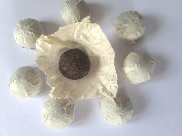 De la même manière que le Pu Erh Tuocha, on le reconnaît grâce à son parfum de terre humide et son infusion de couleur cuivrée. Saveur végétale et boisée qui imprègne délicieusement le palais.